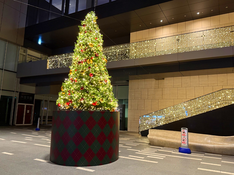 今年はゴールドを基調としたクラシカルなツリーが、エントランスを華やかに彩ります。